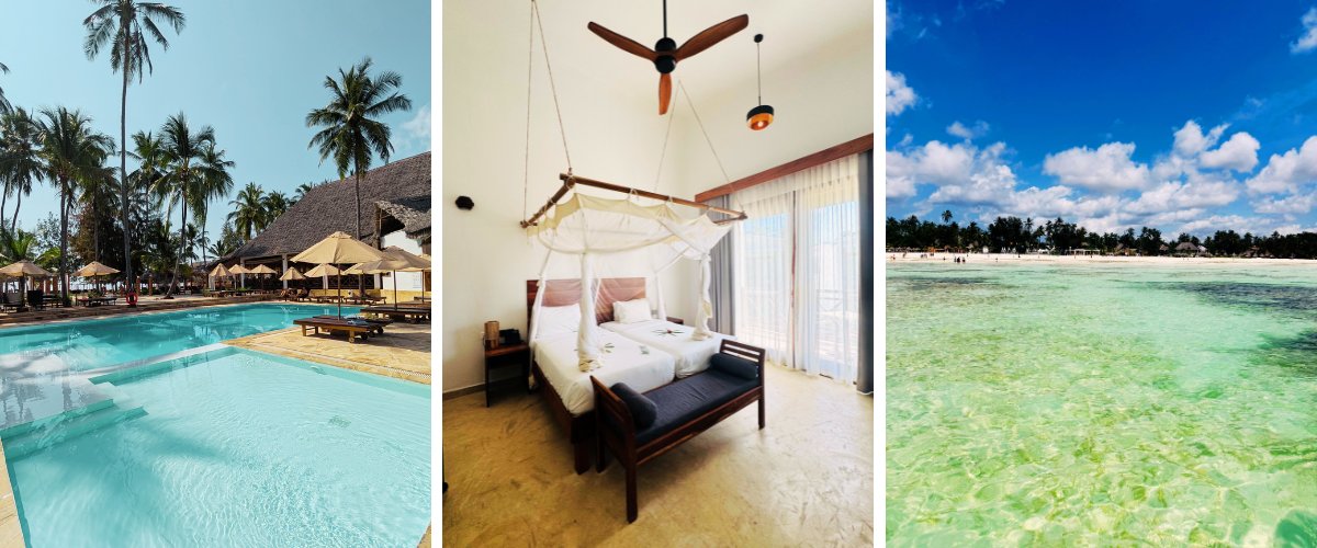 Pasé una semana en el SBH Mónica Zanzíbar ★★★★★, un hotel hasta hace poco solo adultos (en octubre de 2025 han comenzado a aceptar familias). Está en Paje, al sureste de la isla, con una playa de arena blanca y agua color turquesa.